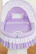 Wicker Mand wiegje Bellamy - wit + lila beddengoed
