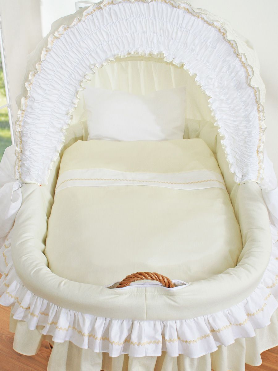 Wicker Mandje met Verstelbare Kap Bellamy - Natuurlijk + Crepédéken Wiegdrapering