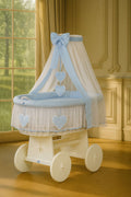 Wicker Mandje met Drape Amelie - Wit + Blauw Beddengoed