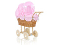Wicker poppenwagen - rieten kinderwagen - met bekleding & rubberen wielen voor veilig spelen