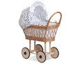 Natuurlijke Wicker Poppenwagen met Zwart-Witte Bekleding