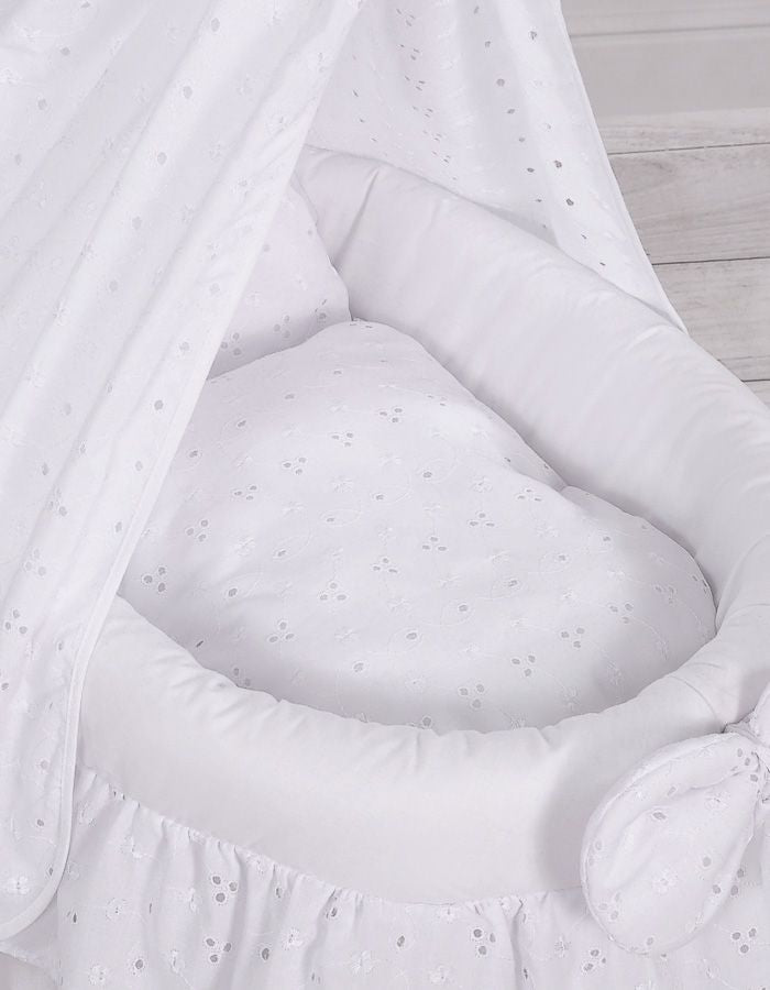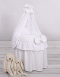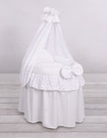 Wicker poppenwiege met kap - roze met geborduurd kant