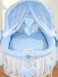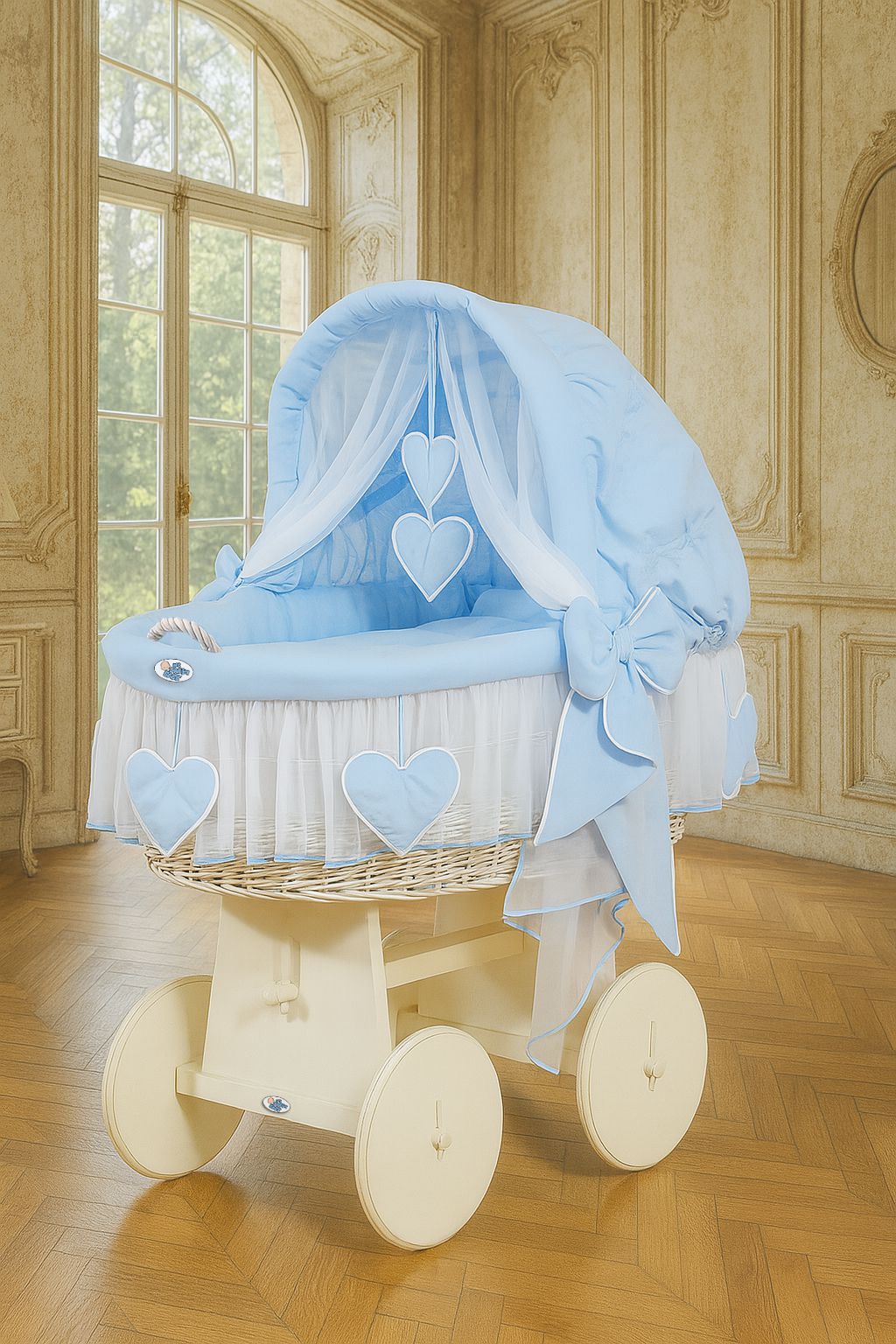 Wicker Wieg Amelie met Kapje - Wit + Blauwe Bedekking