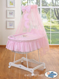 Een prachtige mand die het grootste wiegje op de markt is. Gemaakt van witte wicker en hout, inclusief compleet beddengoed en gordijnset zoals op de foto.