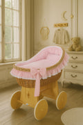 Wicker Wieg met Kap in de kleur Baby Pink - Natuurlijk + Roze Beddengoed