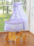 Wicker wieg met doek Amelie - natuurlijk + lilakleeding