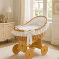 Wicker Wieg Koopwagen Carina - Natuurlijk + Wit Beddengoed
