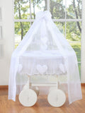 Wicker wieg met luifeltje Deluxe Amelie - wit + wit beddengoed