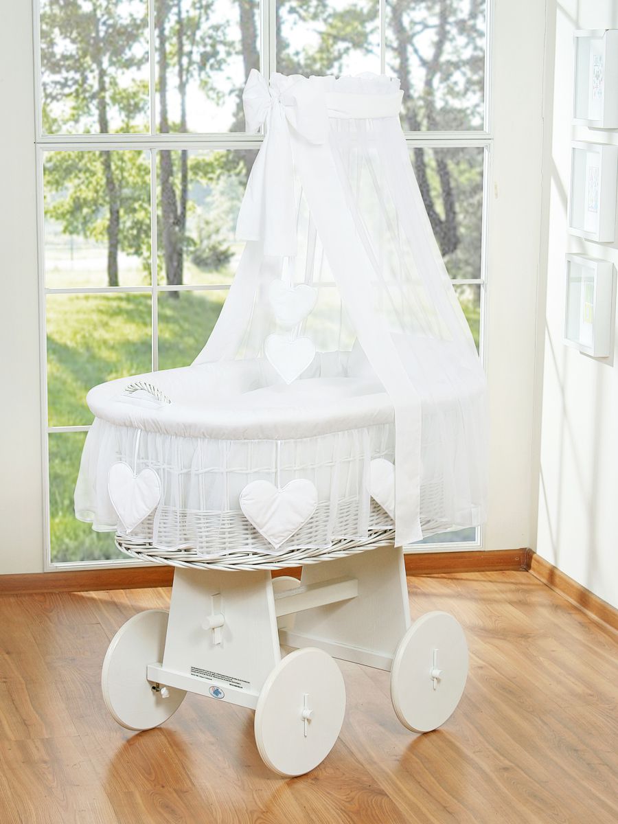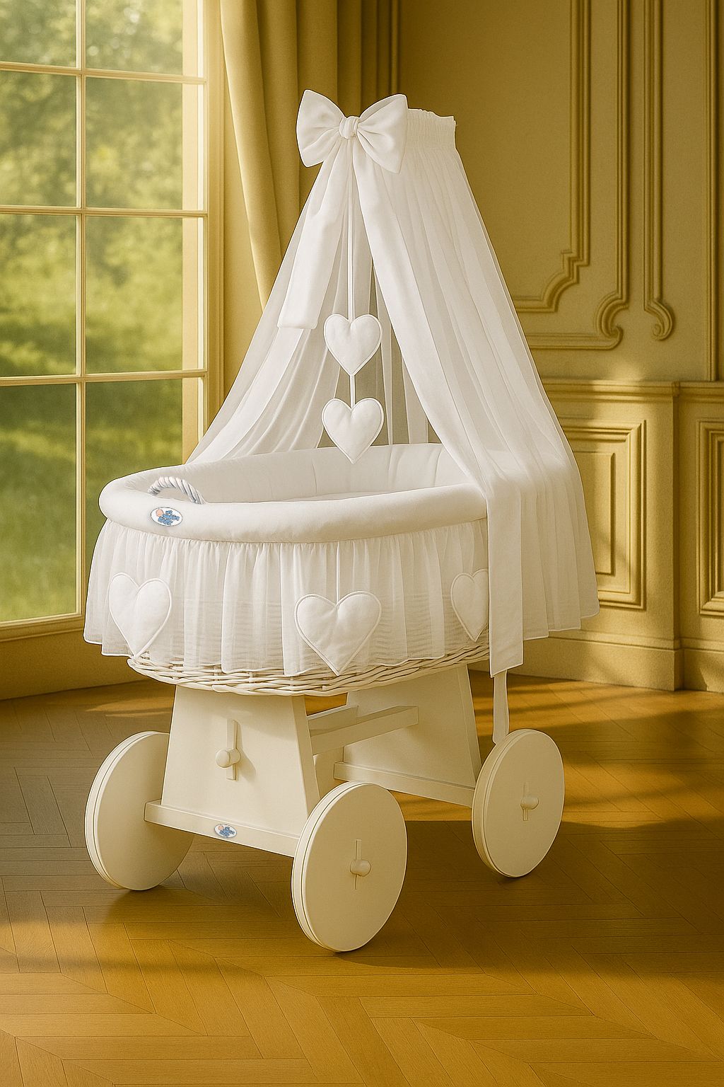 Wicker wiegje - handgemaakt babybedje - duurzaam en comfortabel met wit beddengoed