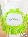 Wicker wiegje – rieten babybed – groot formaat en anti-allergisch matras – uilen groen