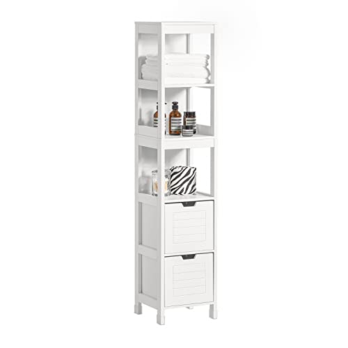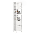 Details: De witte hoge badkameropbergkast past perfect bij uw moderne of traditionele inrichting. De kast heeft 3 planken en 2 lades, zodat je voldoende opbergruimte hebt voor al je badkamerbenodigdheden. Ruimtebesparende opbergoplossing die ervoor zorgt dat uw badkamer netjes en georganiseerd blijft. Productdetails Materiaal/afwerking: MDF/wit. Afmeting: B30 x D30 x H144cm. Gewicht: 16 kg. Laadvermogen: 10 kg/laag. Het artikel wordt geleverd in een platte verpakking en vereist zelfmontage. Gedetailleerde instructies meegeleverd. De decoratieve elementen zijn niet bij de levering inbegrepen. Als u vragen heeft, neem dan per e-mail contact met ons op, wij zullen zo snel mogelijk antwoorden!