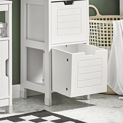 witte hoge badkameropbergkast met 3 planken en 2 lades