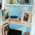 - Een moderne plank in ladderstijl met een tafelblad in het midden is voordelig.