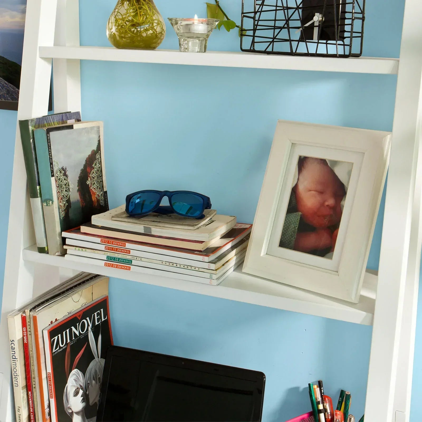 - Witte houten opbergrek, ladderplank met bureau en 2 planken - 64x39x180cm