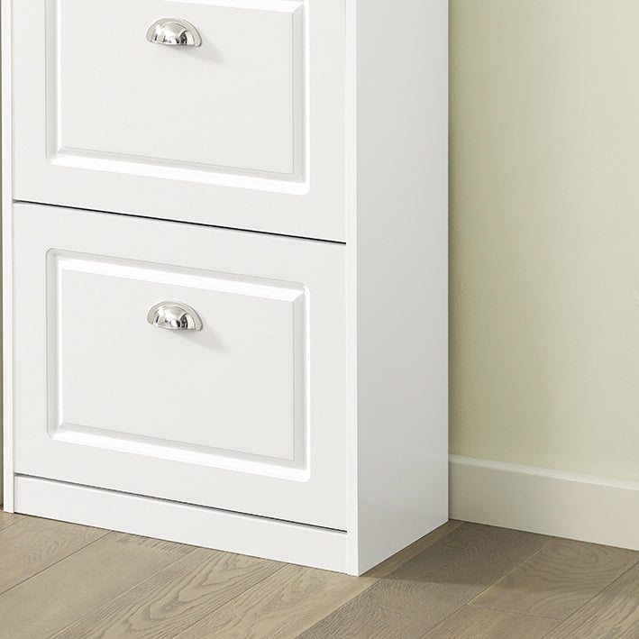 Ontdek de perfecte mix van functionaliteit en stijl met de witte schoenenkast. Deze schoenenkast is ontworpen om uw hal overzichtelijk en overzichtelijk te houden en is dankzij het innovatieve systeem met drie kleppen ideaal voor het opbergen van verschillende schoenmaten en -stijlen.