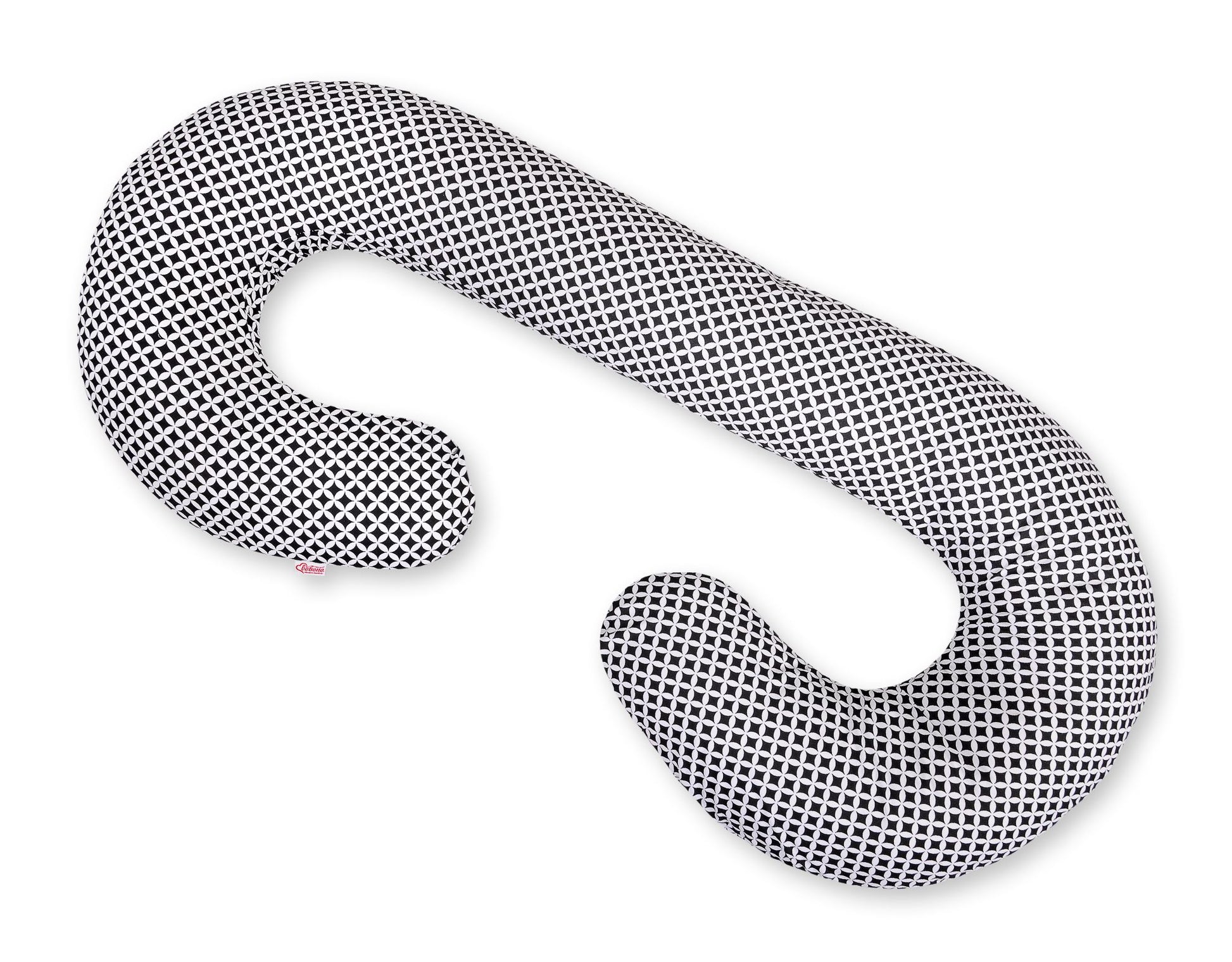 Ervaar ultiem comfort met het Maternity Support Pillow C, voorzien van een afneembare kussensloop in stijlvol rozetten zwart. Dit grote zwangerschapssteunkussen is speciaal ontworpen voor comfortabel slapen op de zij en biedt optimale ondersteuning tijdens rust, slaap, borstvoeding en flesvoeding.