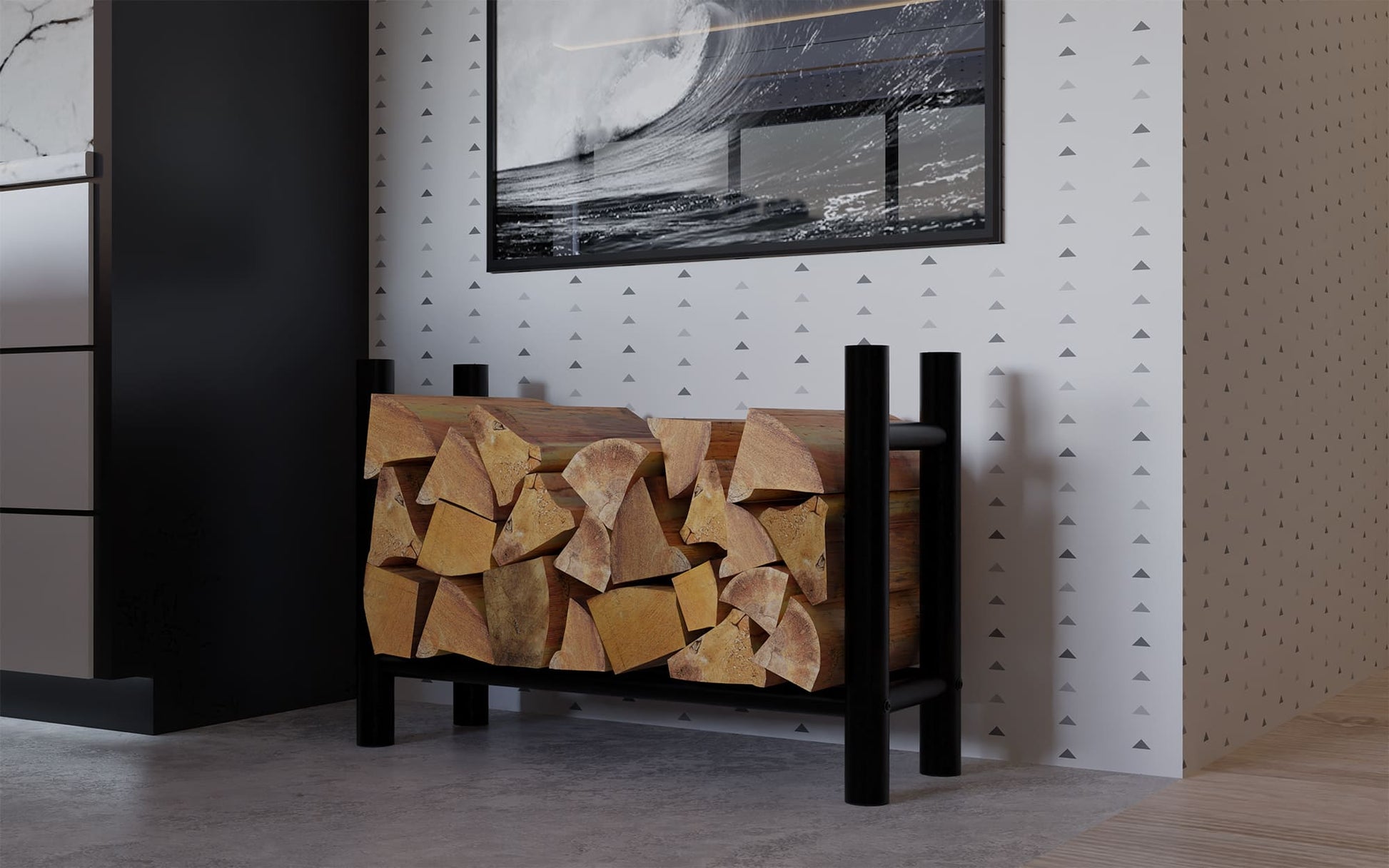 Zwarte Houtopslag - Houtrek - Stevige Staalconstructie, Ideaal voor Binnengebruik