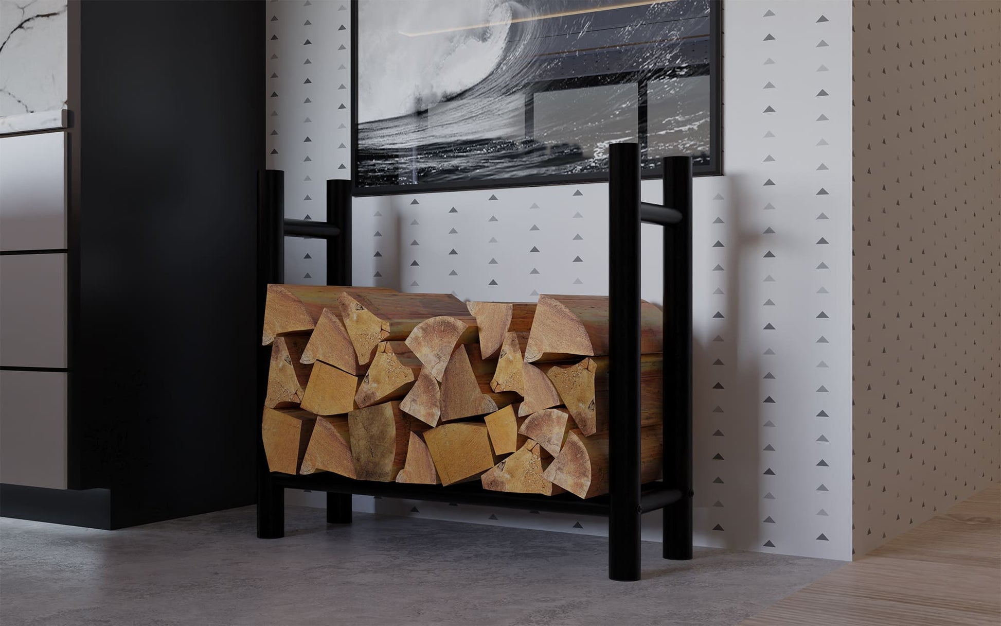 Zwarte Ronde Houtopslag - Brandhoutrek - Duurzaam Staal, Moderne Poedercoating