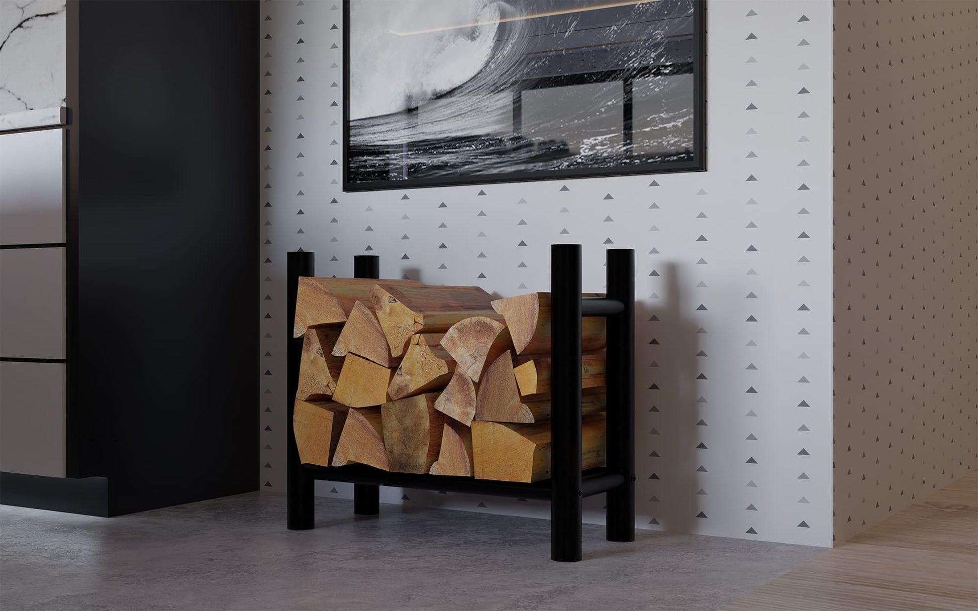 Deze houtopslag is een stijlvol en praktisch accessoire voor uw huis. Verkrijgbaar in vijf verschillende maten om aan uw behoeften en ruimtelijke wensen te voldoen. De standaard is gemaakt van stevig staal, wat zorgt voor een hoog draagvermogen en duurzaamheid. De poedercoating geeft het een moderne en elegante uitstraling die past bij elk interieurontwerp. Dankzij de optimale afmetingen biedt deze brandhoutstandaard voldoende ruimte voor veel houtblokken, zodat u altijd voldoende brandhout bij de hand heeft. Het haardhoutrek is eenvoudig te monteren en binnen enkele minuten op te zetten. Dit betrouwbare en aantrekkelijke accessoire voegt een aangename sfeer toe aan elke kamer terwijl het uw houtvoorraad organiseert. Koop deze brandhoutopslag en creëer een uitnodigende en gezellige sfeer in uw huis.