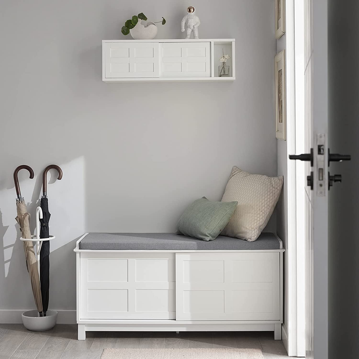 - Je kunt deze wandkast als set combineren met de opbergbank.