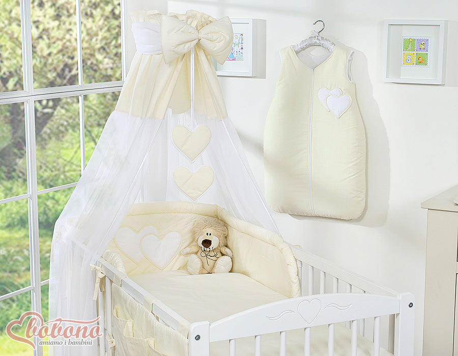 Chiffongsängel, babyhimmel, mjukt skydd med hängande hjärtan i krämfärg
