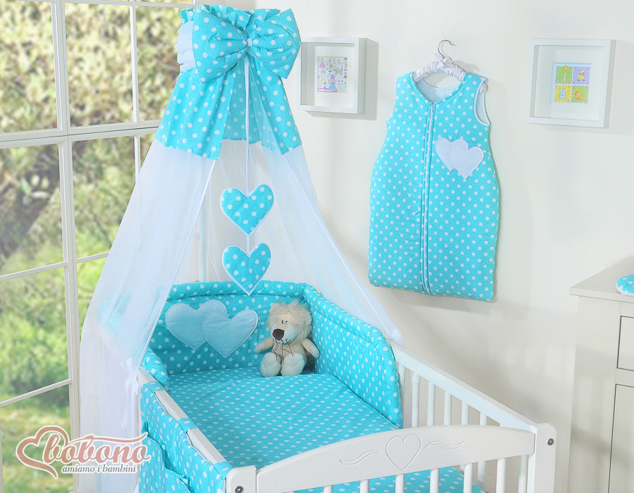 Chiffongsänghimmel - spjälsängssänghimmel - skyddar mot ljus och drag - vit med turkosa prickar