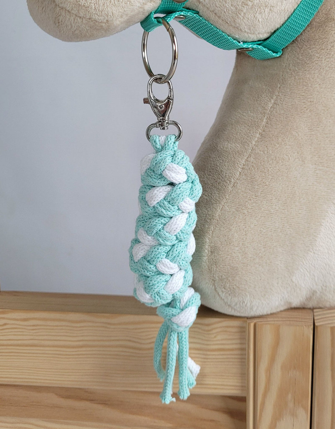 Dubbelt rep för hobbyhäst - Vit-Mint Högkvalitativt, handgjort mjukt tether för hobbyhästar. Detta tether är...