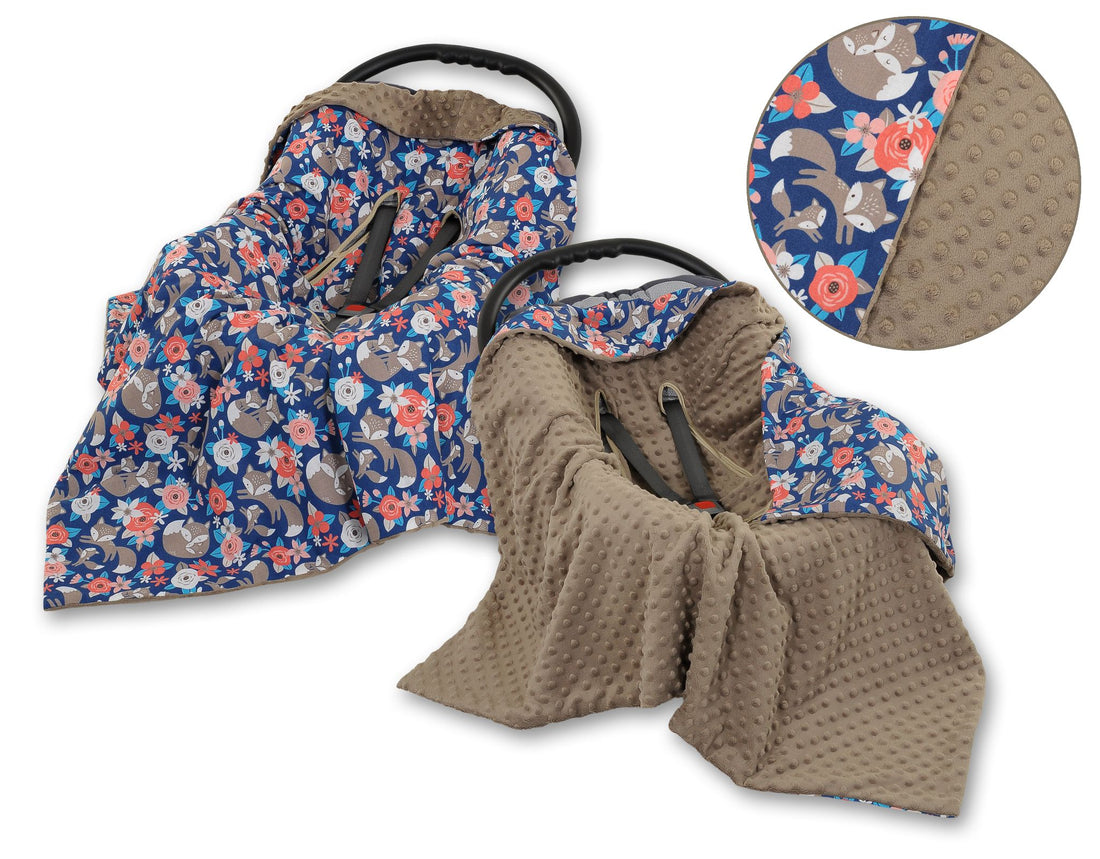 Stor dubbelsidig bilbarnstolsfilt - Fox family i blått/brunt Denna stora, dubbelsidiga bilbarnstolsfilt är speciellt utformad...