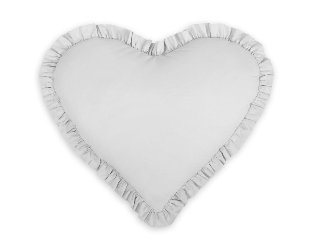 Dekorativ hjärtformad kudde - grå Elegant hjärtformad kudde med en charmig volang. Denna eleganta kudde...
