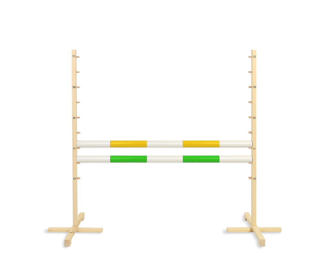 Hinder för hobbyhäst 120 cm med två stänger i gult och grönt Upptäck det roliga...