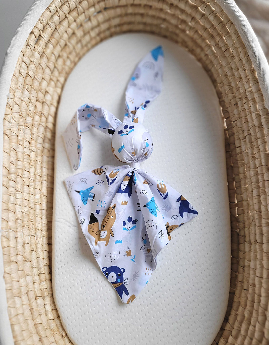 Mjuk och mysig gosfilt med kanin - Marinblå med björnar En underbart mjuk och gosig...