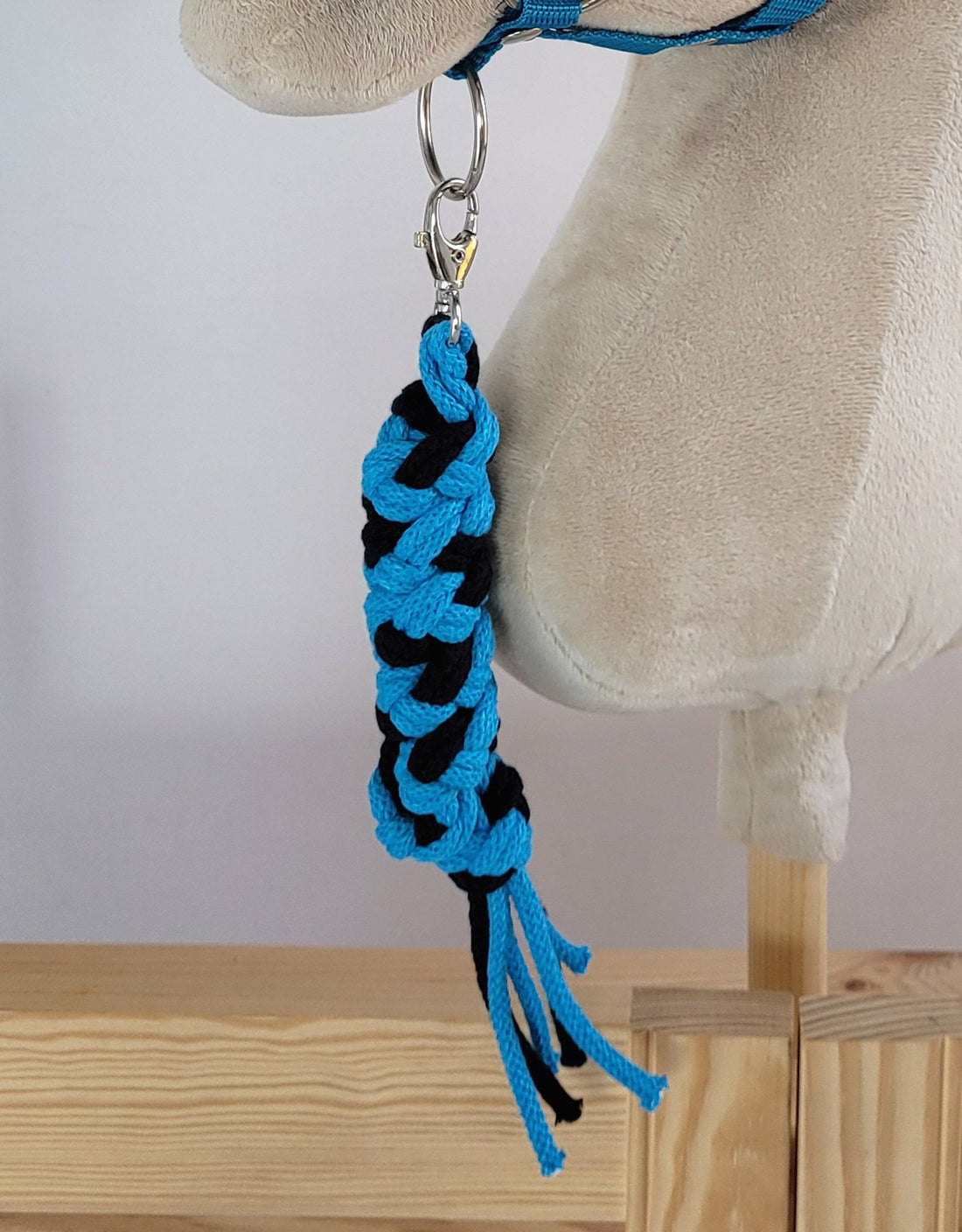 Kopple för hobbyhäst av dubbeltvinnat snöre - svart-turkos Högkvalitativt, handgjort, mjukt koppel för din hobbyhäst....