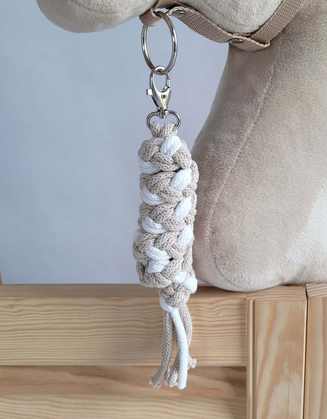Käpphästkoppel av dubbelflätad snöre - vitbeige Högkvalitativt, handgjort mjukt koppel för hobbyhäst. Detta koppel är...