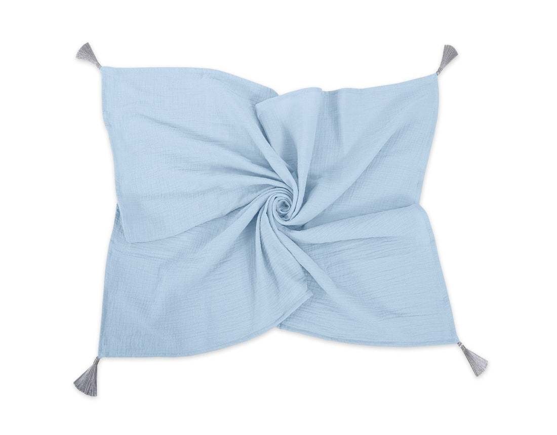 Blå muslinfilt med tofsar - Dubbel gasväv Denna lätta och mjuka babyfilt är tillverkad av...