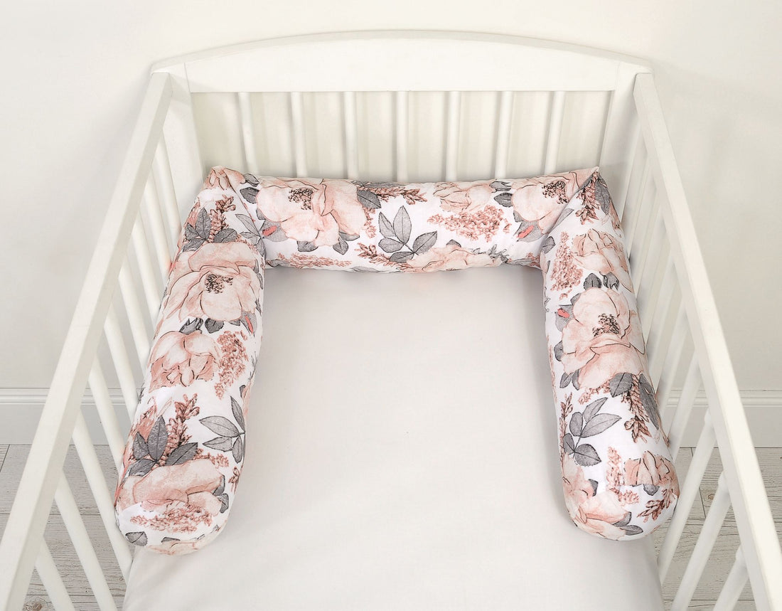 Rullande ormbädd för babysäng - sängskydd - optimalt skydd mot stötar - sepia rosmönster