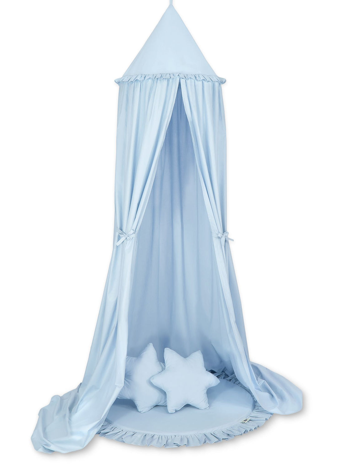 Set: Hängande baldakin för barnrum + lekmatta + kuddar – blå Detta snygga set innehåller...
