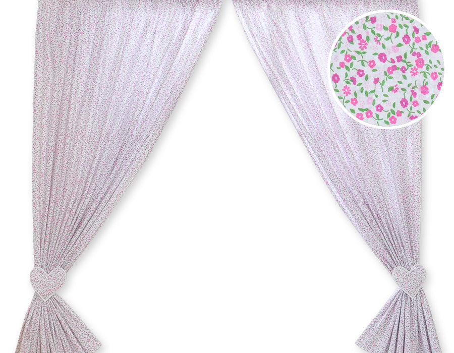 Gardiner till babyrummet - Hängande hjärtan med rosa blommor Skapa en elegant och inbjudande atmosfär...