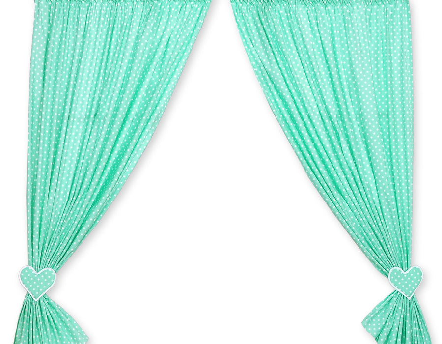 Set med 2 barnrumsgardiner – barngardiner – tvättbara – Hängande hjärtan mintgröna prickar
