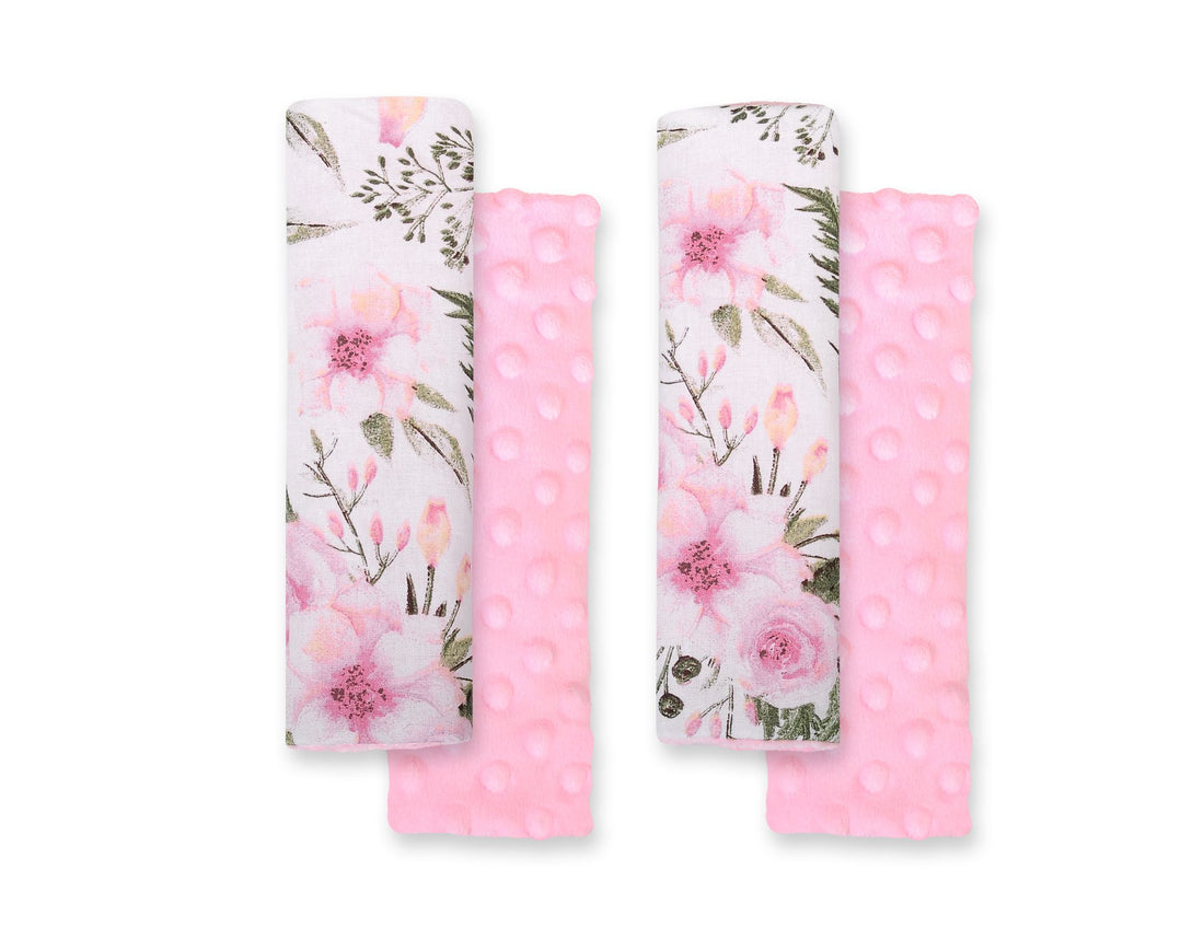 BOBONO Dubbelsidiga Sätesdynor för Bilbälten - Peony Pink Dubbelsidiga säkerhetsbälteskuddar, perfekta för bilbarnstolar, bärselar och...