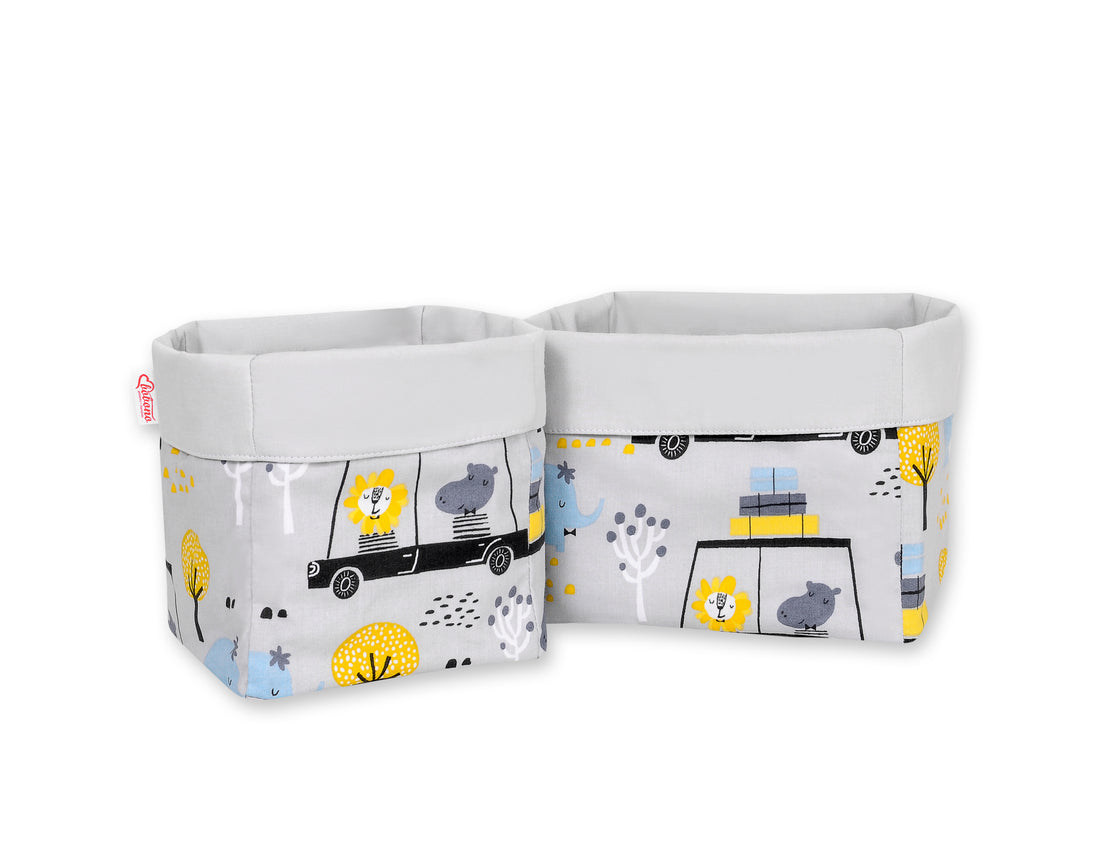 Set med 2 förvaringskorgar - Djur i bilar grå Denna uppsättning med två förvaringskorgar är...