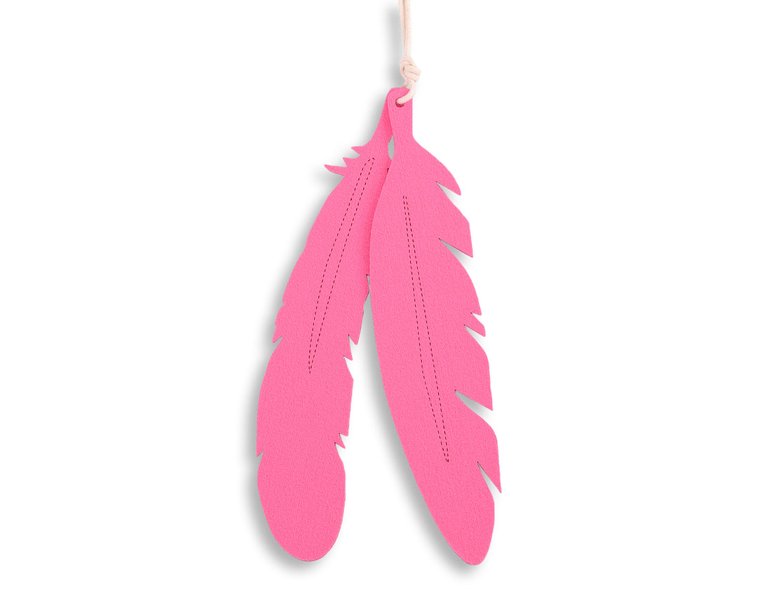 Set med 2 filtfjädrar - dekorativa fjädrar - robusta och hållbara, 4 mm tjocka, rosa, inklusive upphängningssnöre