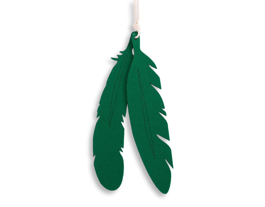 Set med 2 filtfjädrar - dekorativa hängen - robust 4 mm filt