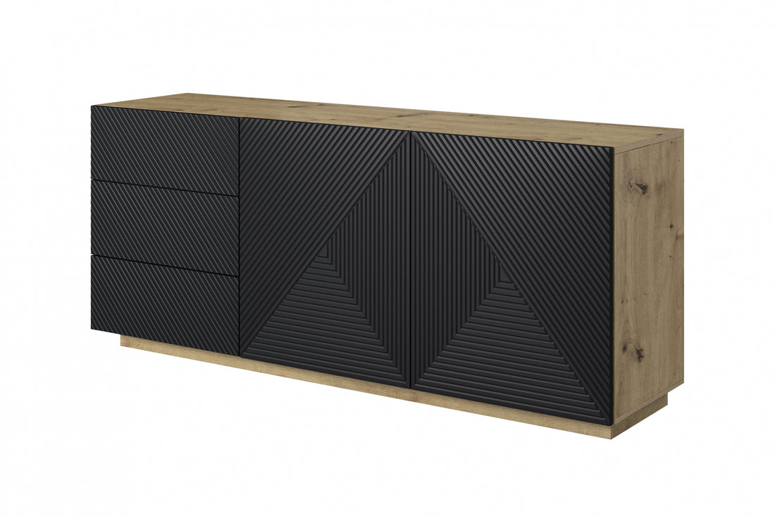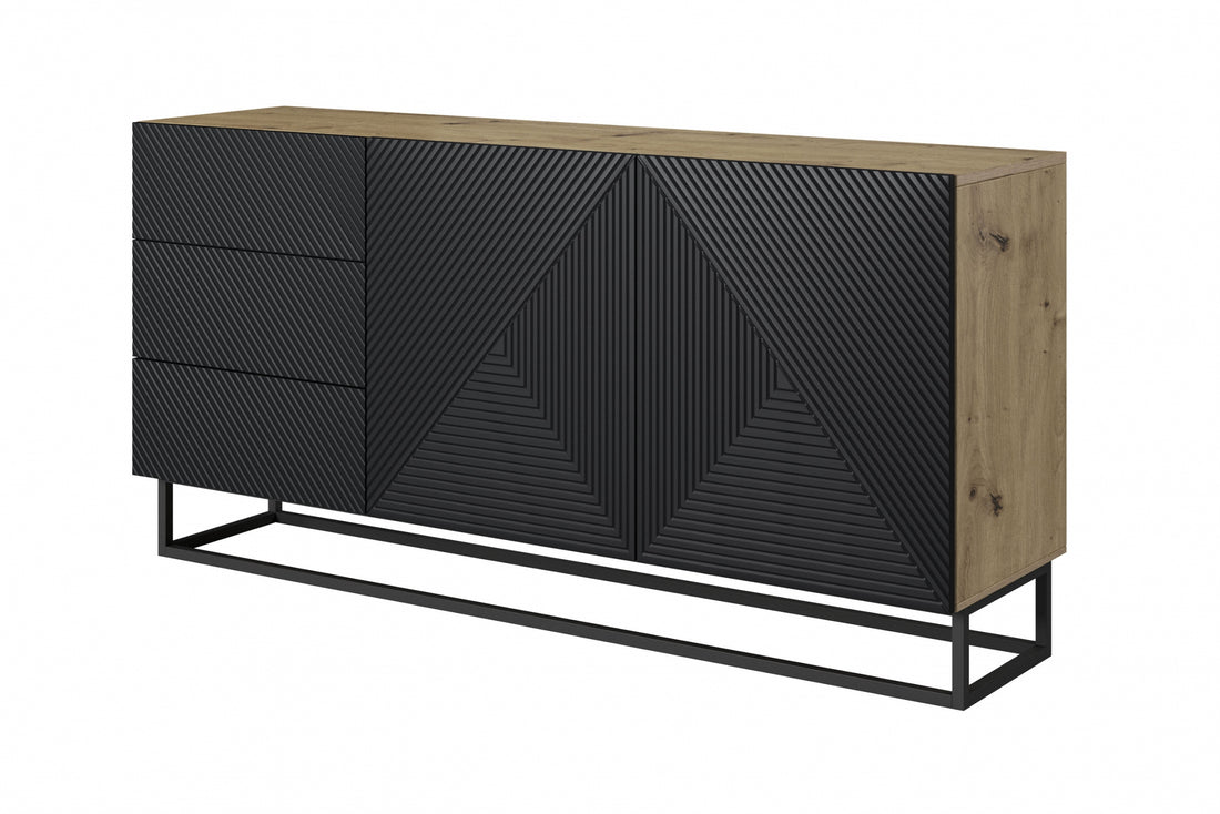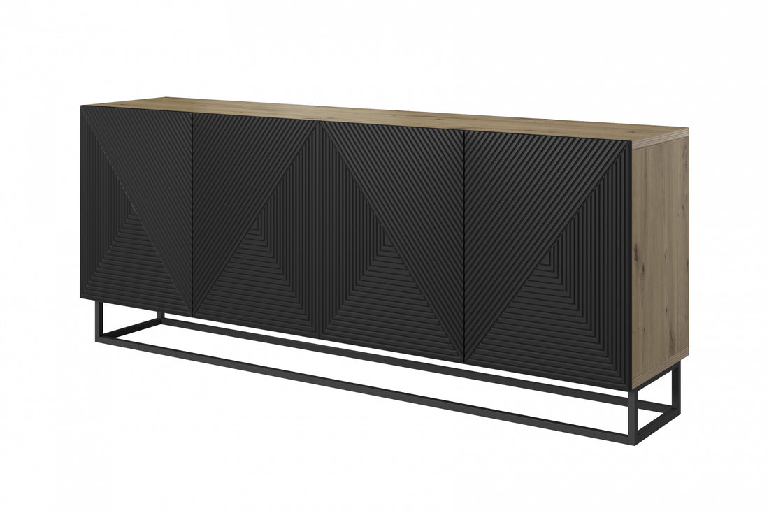 Moderne Komoda Asha 200 cm met gegroefd front - Ambachtelijk eiken | Kleur: Matzwart