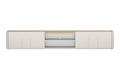 Het Amilio TV-meubel van 220 cm combineert de verfijnde kasjmierkleur met de tijdloze warmte van geolied eiken. Dit moderne tv-meubel is ontworpen met afgeronde randen en matte kasjmier handgrepen, wat zorgt voor een elegante uitstraling in elk interieur. De robuuste constructie van 18 mm dikke MDF en melamineplaat met ABS-randen maakt dit meubelstuk duurzaam en krasbestendig, terwijl het softclose-sluitsysteem extra gebruikerscomfort biedt. Het meubel voldoet aan de laatste interieurtrends en is zowel praktisch als een echte blikvanger in je woonkamer.