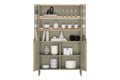- Materiaal: 70% gelamineerde meubelplaat & MDF, 20% glas, 10% massief beukenhout (poten/handgrepen)