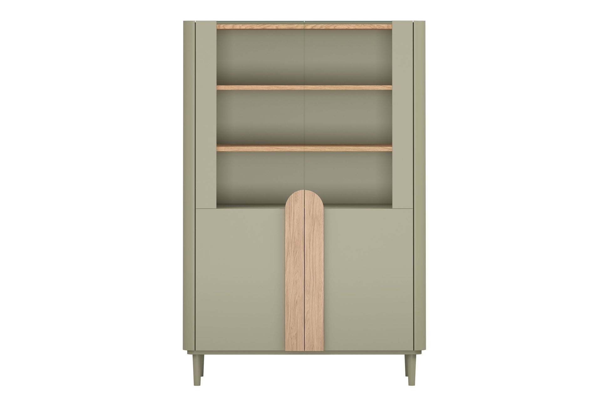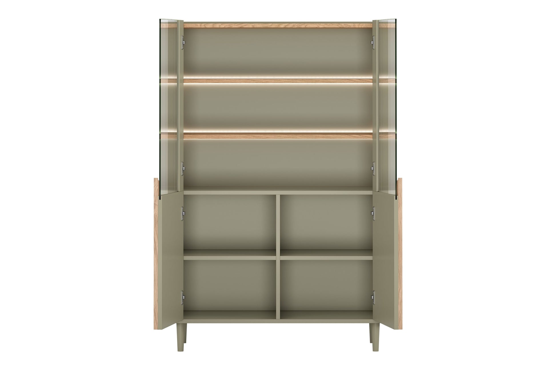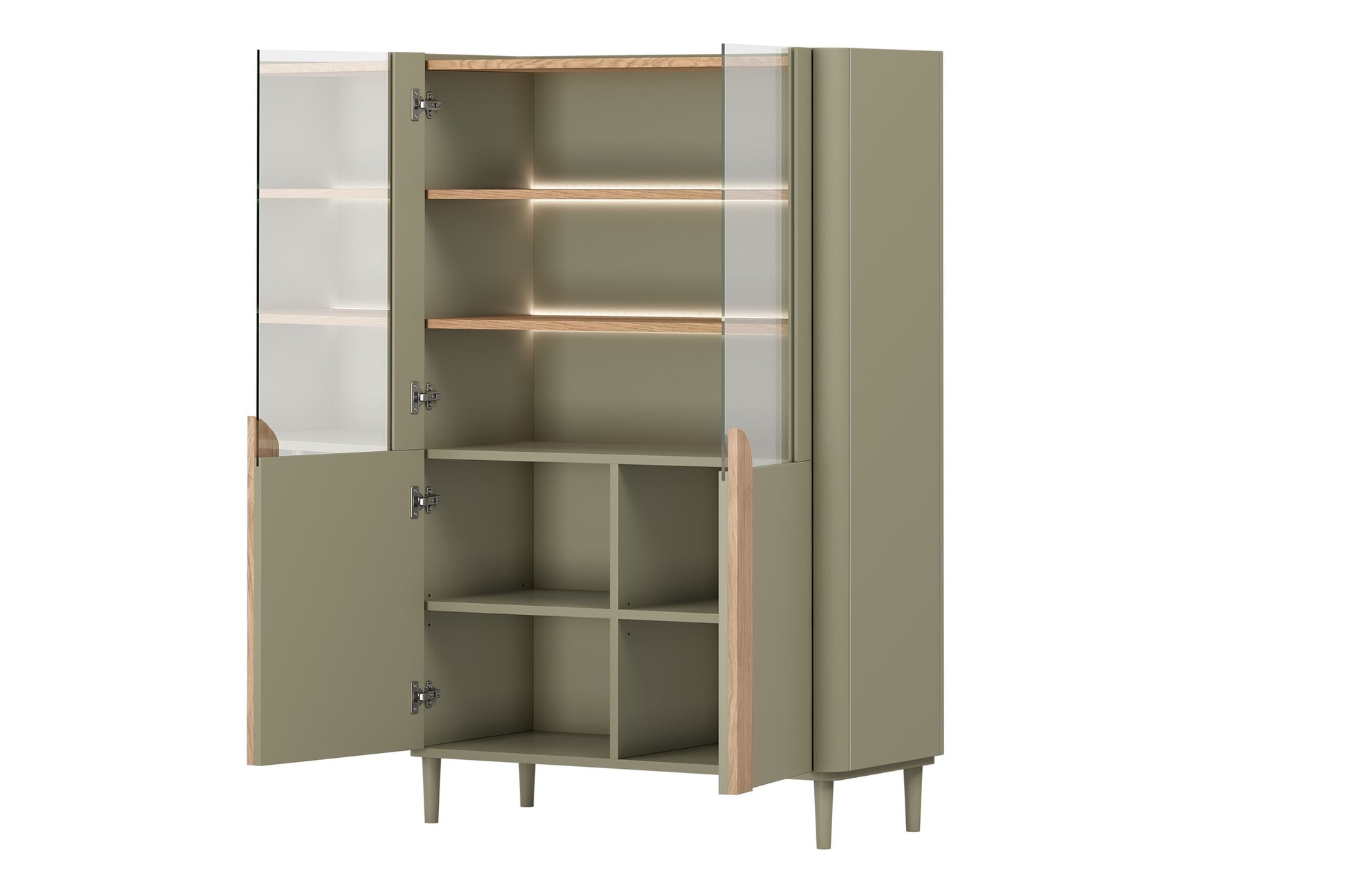 Amilio vitrinekast 100 cm met LED-verlichting - Eucalyptus & Baltische Duineik | Kleur: Groen &