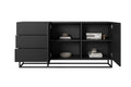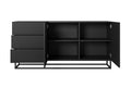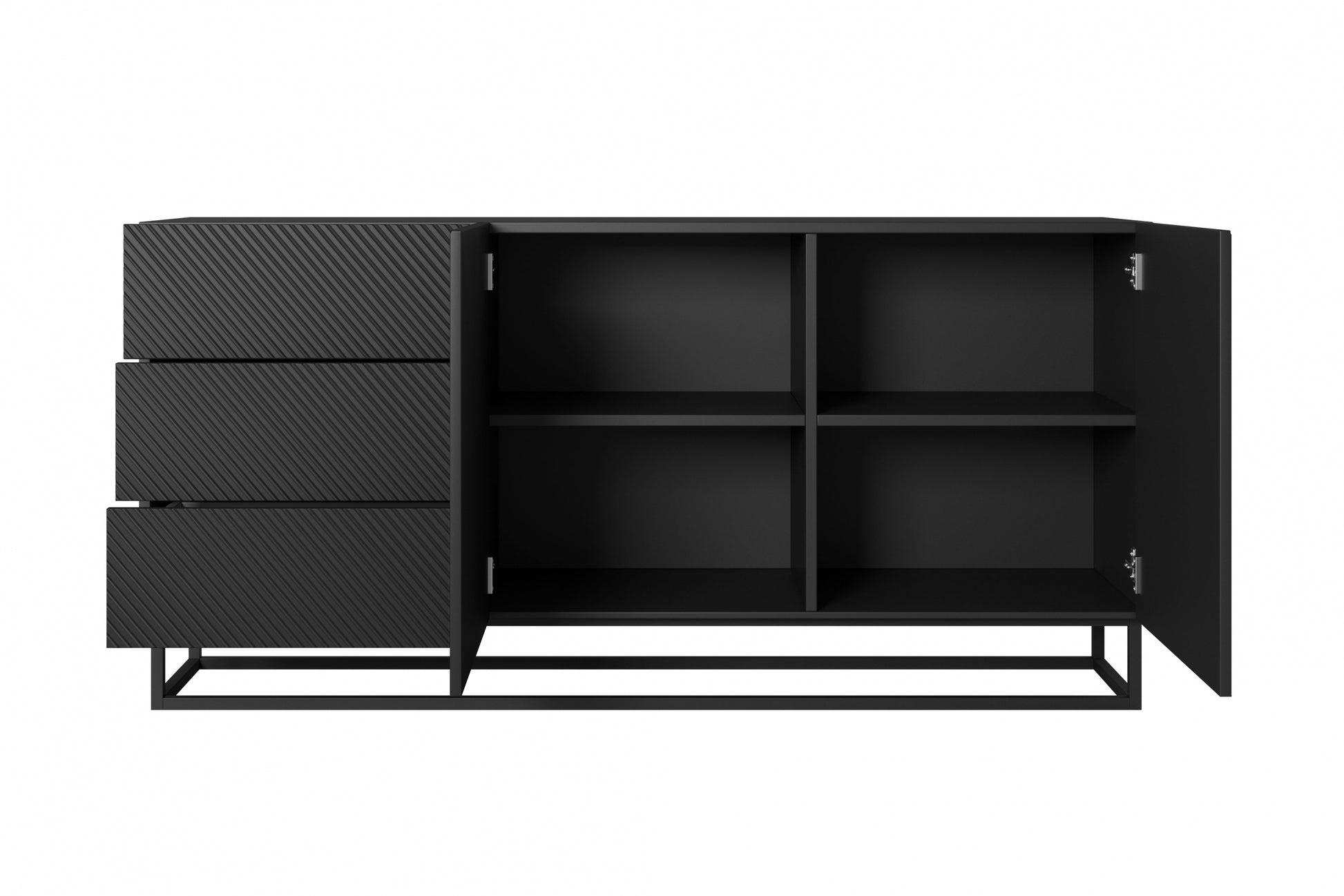 Geef jouw interieur een moderne upgrade met de Asha ladekast 167 cm in matzwart. Dit meubel combineert minimalistisch design met functionaliteit en valt direct op dankzij de elegante, gegroefde voorkant en zwarte afwerking. De stevige, gepoedercoate stalen poten dragen bij aan de moderne uitstraling en bieden extra stabiliteit. Uitgerust met drie ruime lades, een push-to-open-systeem en afsluitbare deuren, biedt deze kast optimale ruimte voor al jouw spullen. De hoogwaardige materialen en stille sluitmechanismen zorgen ervoor dat je jarenlang plezier hebt van deze stijlvolle must-have.