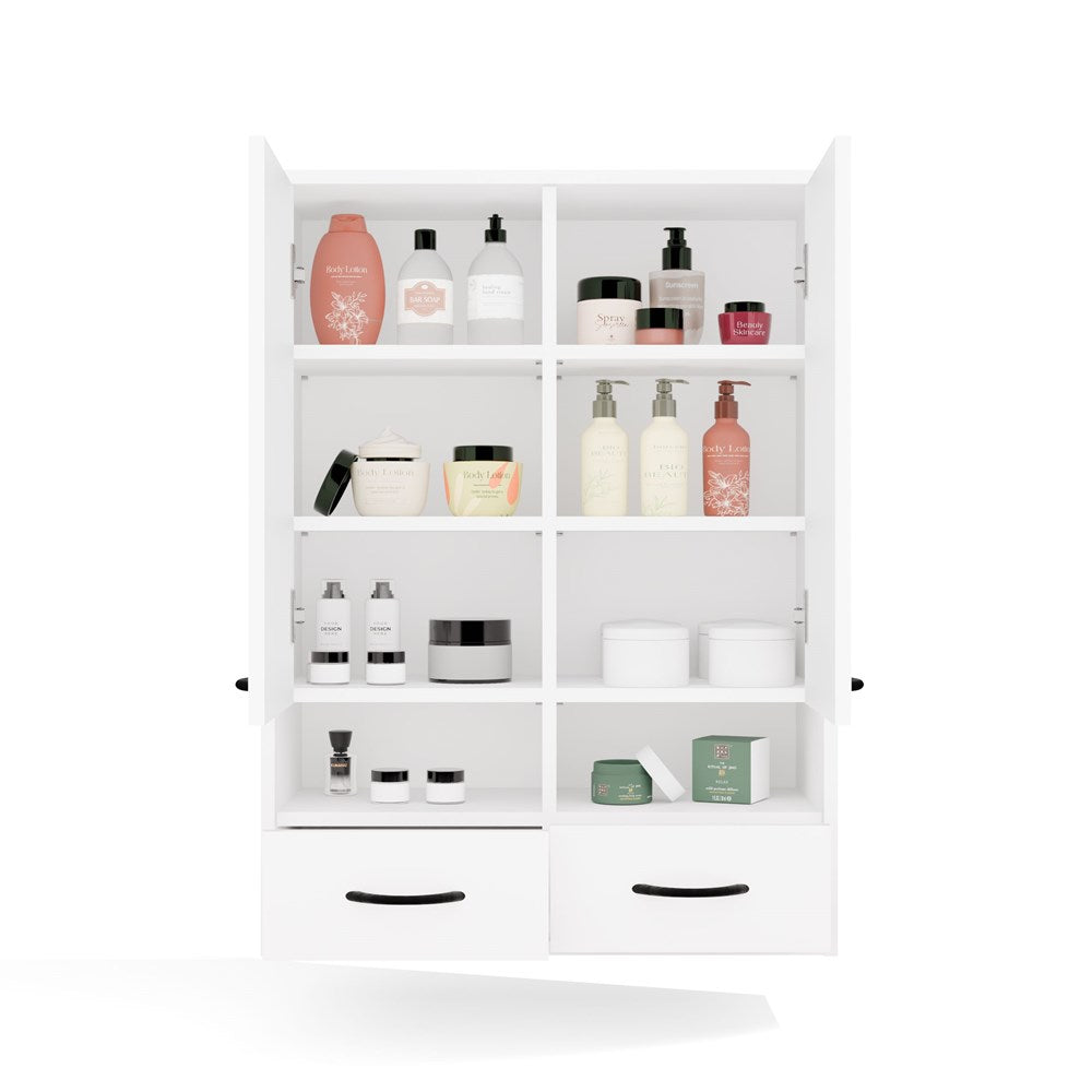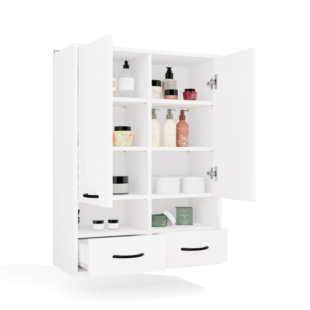 Badkamer Hangkast NINA W2D2P2S met 2 Lades - Mat Wit | 66x90x30 cm