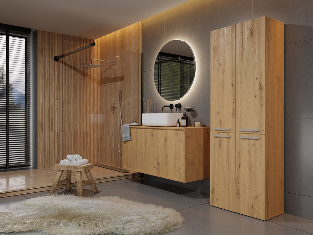Badkamerkast NEL DD 1K met lange deur en mand - 5 planken | Kleur: Artisan Eiken | Maat: 60x30x174