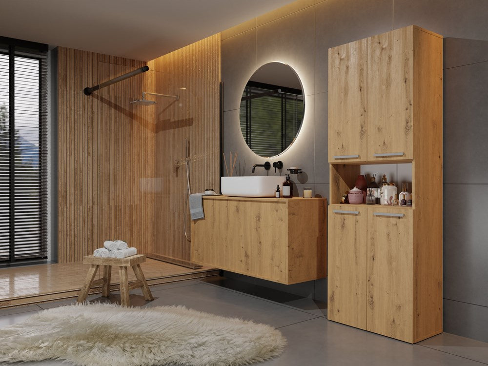 Badkamerkast NEL DK 2K met 2 Mandjes en Korte Deuren | Artisan Eiken | 60x30x174 cm